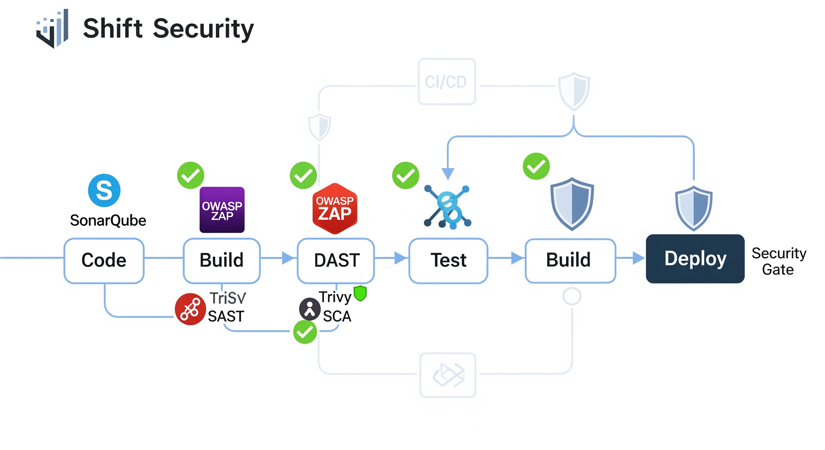 Here’s a practical example of a comprehensive security pipeline that combines all three approaches: